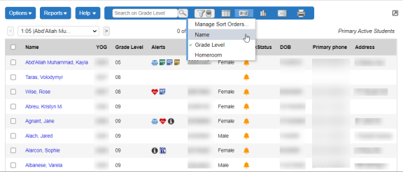 Use the Sort Order menu to determine the order that records appear in on any list page. Manage your sort orders in the upper-right corner of each page using the Sort Order icon Sort order menu icon. .