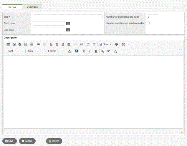 The first step to setting up a survey is defining its details. These include a start and end date, and how many questions you want to appear on each page.