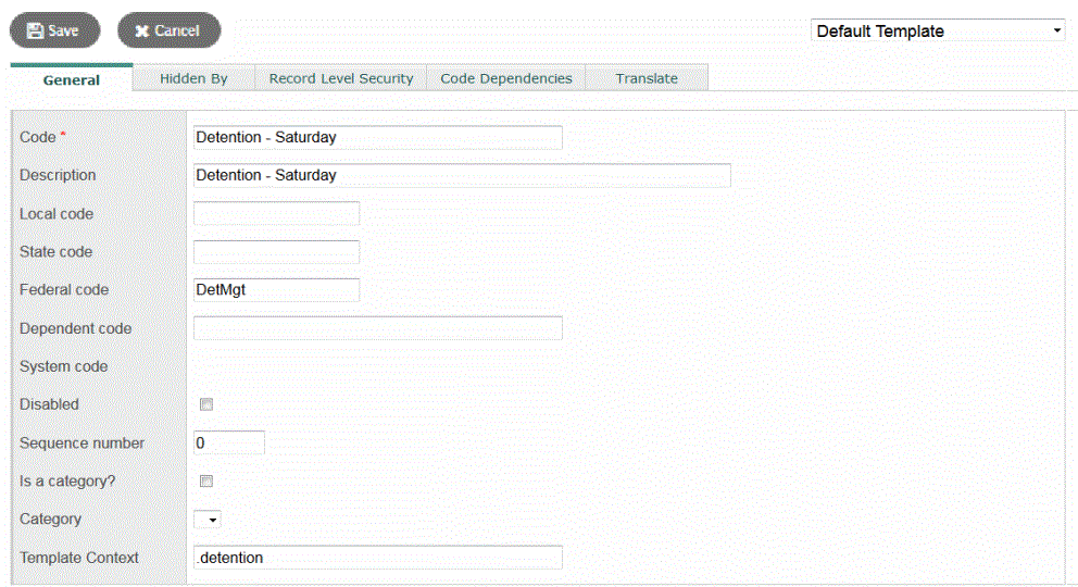 1. Find one of your district’s detention fields, such as Detention - Saturday.