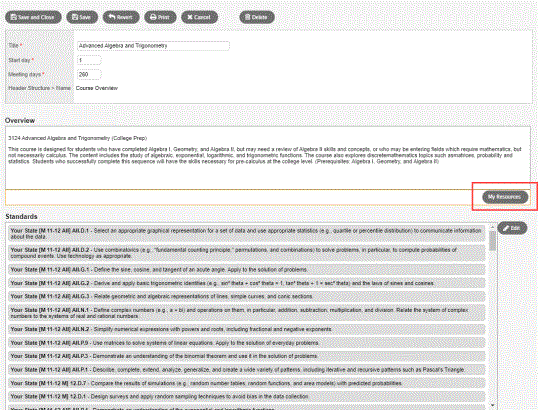 1. For each element, click My Resources to access your personal resources and any shared resources, including district resources, you want to add to a topic.