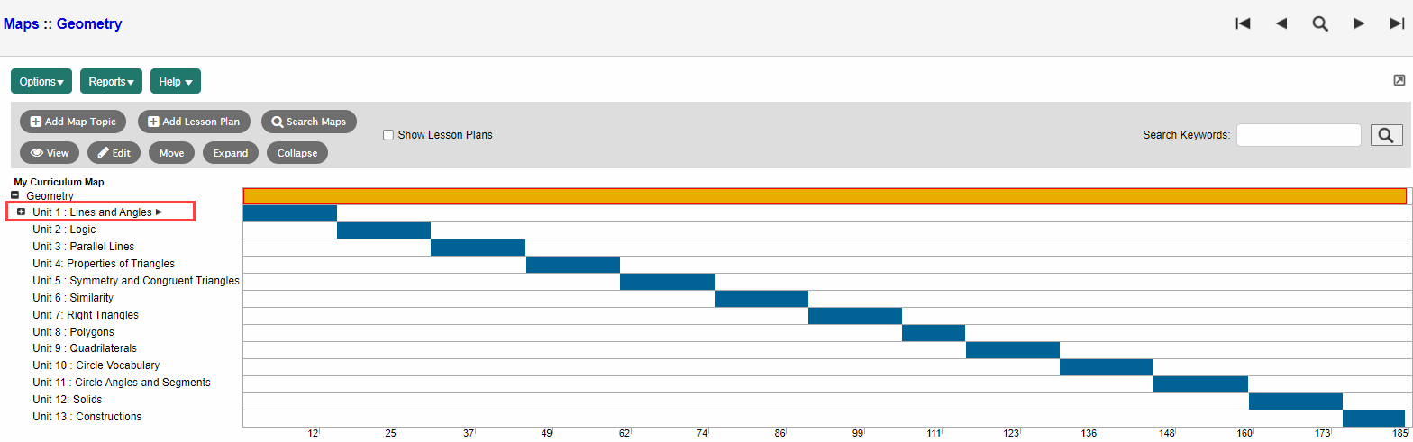 For example, a lesson plan for a chapter map topic might cover 4 instruction days.