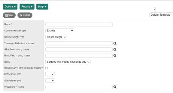 Note: Aspen divides total points by total course weights to determine GPA. This field determines the value the system uses for the total course weights.