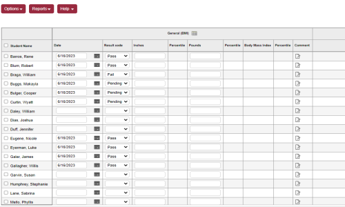 - From the Options menu, click Delete. The student's name remains, with the screening data removed.