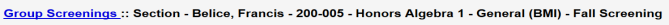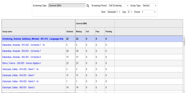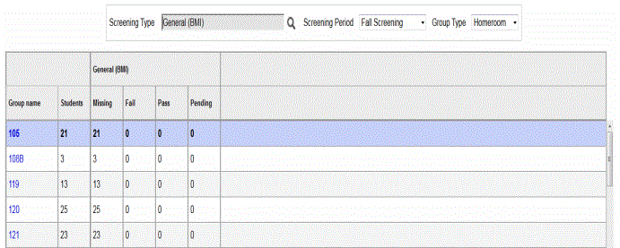 You can record a screening for a group of students at one time. Record screenings by group type, such as homeroom, section, or grade level.