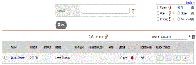 - To view the details for a particular visit, click the student’s name in the appropriate row.