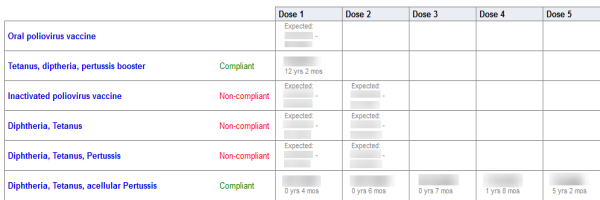 - On the Immunizations side-tab, click Compliance. The student's immunization record appears.