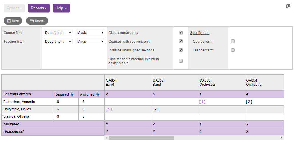 - Assigned: Displays the current number of sections for all courses assigned to the teacher.