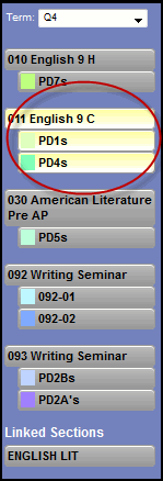 2. Click the classes to determine which classes you want to view information for. Class nicknames appear if you entered them on the Class details page. Class sections you select appear highlighted in yellow, while those unselected remain gray:
