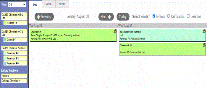 If you link sections of a course on the Class Details page, the linked section's name appears below Linked Sections. Select the name of the linked sections to include those sections on your calendar.