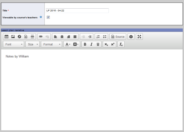 | Note: The lesson plan must be in the course's folder, under the teacher's sub-folder, before other teachers can view it. |