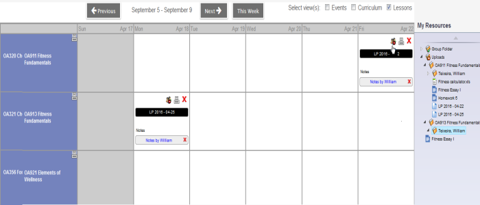 - Drag and drop the lesson plan from My Resources > Uploads > Course # > Teacher's name folder (the teacher who created the lesson) onto the Planner. An editable copy of the quick lesson plan is created in My Resources > Uploads > Course # > Teacher's name folder (your name).