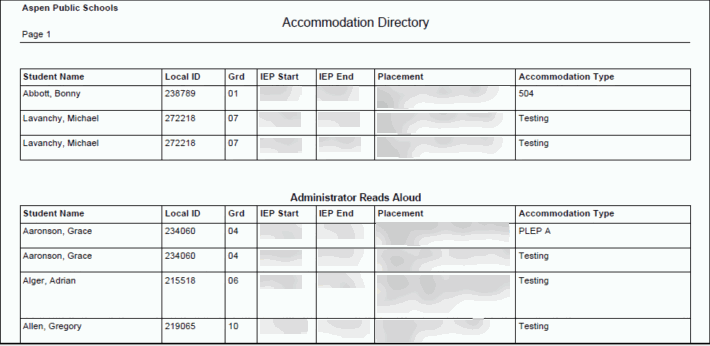 Run the Accommodation Directory report to view a list of students receiving one or more selected accommodations.