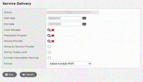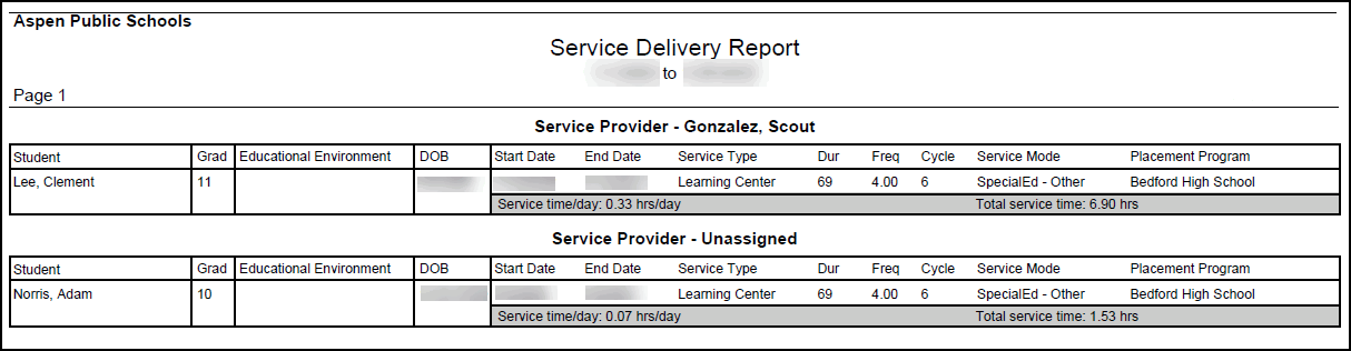 Run the Special Education Service Delivery report to view a list of all students with services during the date range you specify:
