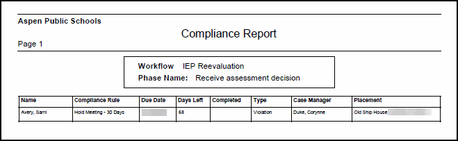 For example, for the Initial Referral special education workflowClosed a method of coordinating multi-step processes involving one or more users, the IEPClosed Individualized Education Program Parent Signature – 30 days compliance rule exists. This rule determines that a workflow phase is overdue, or out of compliance, if the parent signature is not received within 30 days from when the IEP was submitted for approval.