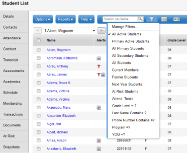 only active students on your Student List. You might look at a snapshot