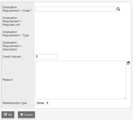 Click  to select the graduation requirement that will receive a full or partial waiver, and then click OK.